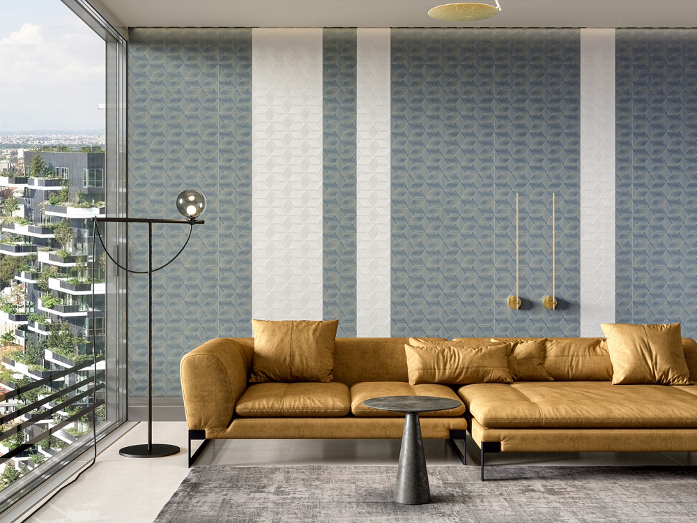 Обои виниловые Геометрия мотив, синий, золотой